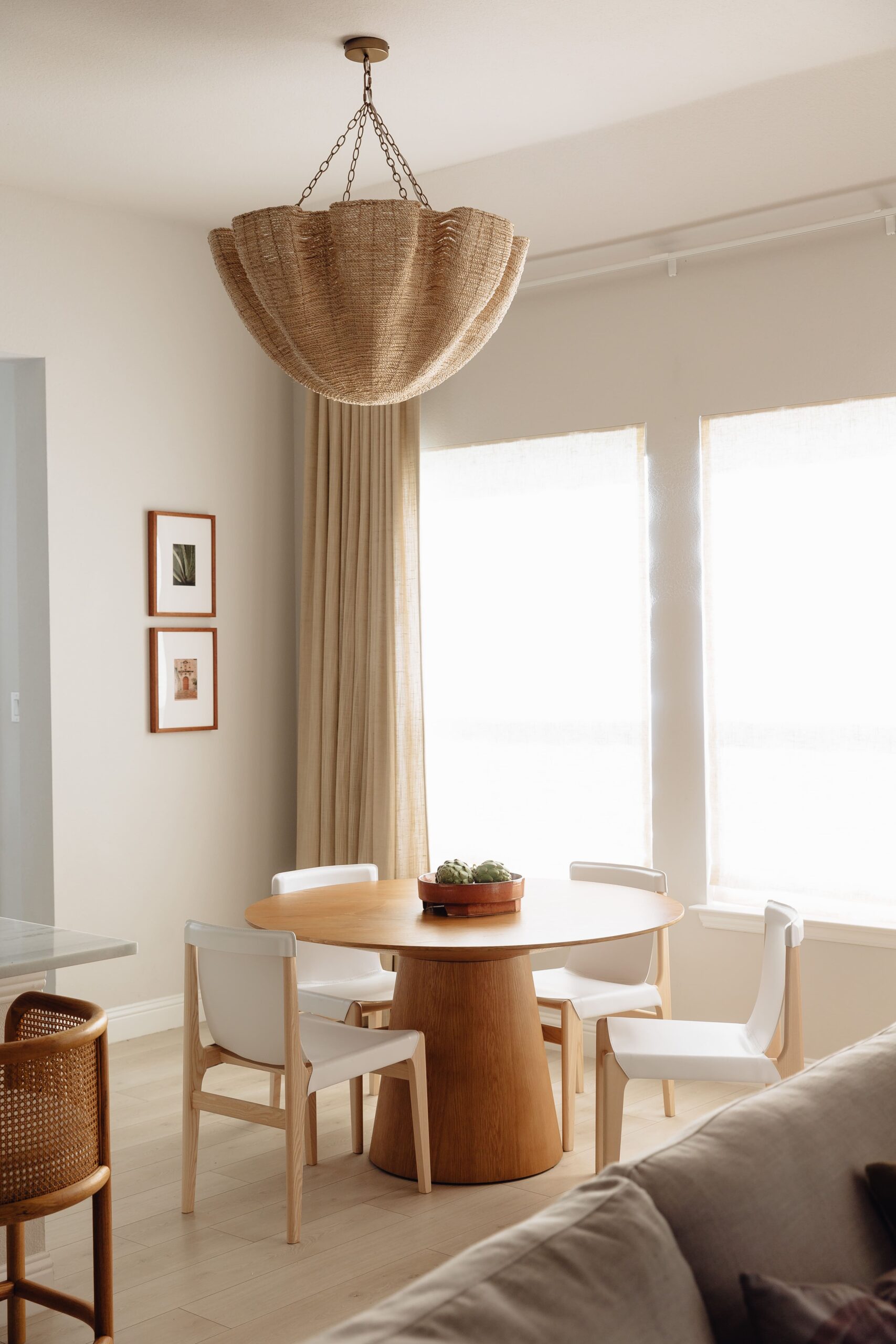 A new-build home lacking character was transformed into a serene retreat through floor-to-ceiling drapery, a carefully curated furniture plan, and intricate millwork in key spaces. Every inch now features welcoming, cozy corners and modern, unexpected spaces, including the ‘content room,’ where each wall provides a picture-perfect backdrop for capturing videos and photos.